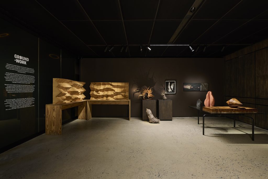 Exhibited a stone’s throw from this breaking of new ground across Jellicoe, Groundwork looks at artists who’ve worked with natural and industrial materials and practices to speak to site, form, and our fundamentally human connection to the earth. The principle of the show is a grounded, earthy materiality.